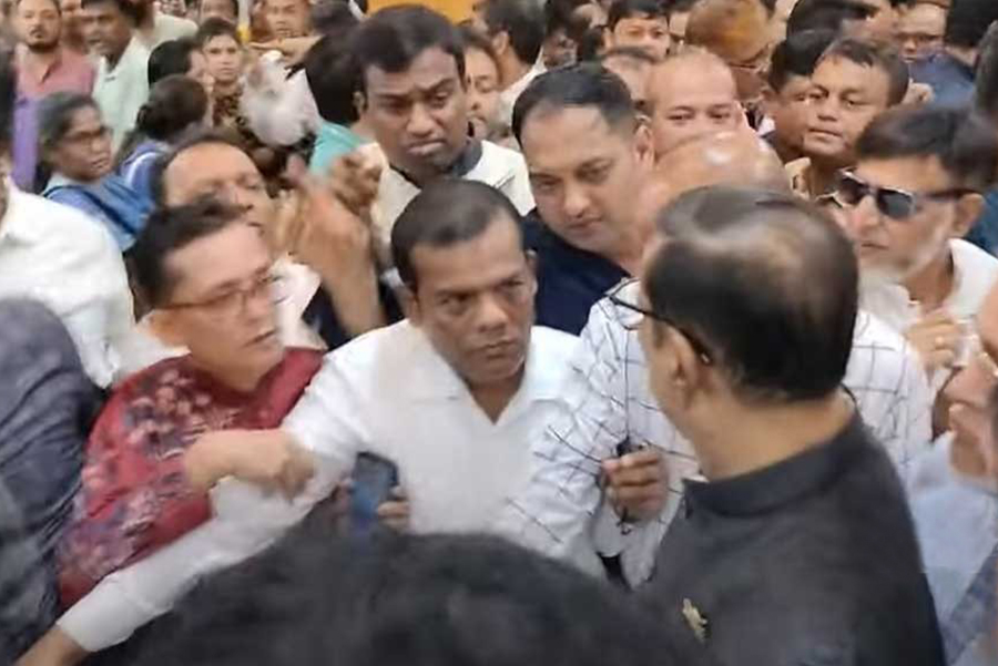 “What is this, brother?” said former Chhatra League Vice President Aminul Islam Bulbul. “We have things we want to say. We did not come to watch his press conference. We came because we want to talk about the situation in Dhaka and overall.”