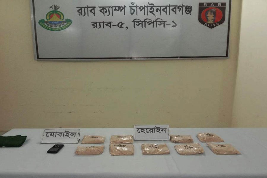 Rapid Action Battalion (RAB) personnel in a drive arrested a suspected drug dealer with 1.8kg heroin from Thakur Joubon area in Godagari upazila of Chapainawabganj on Friday night.