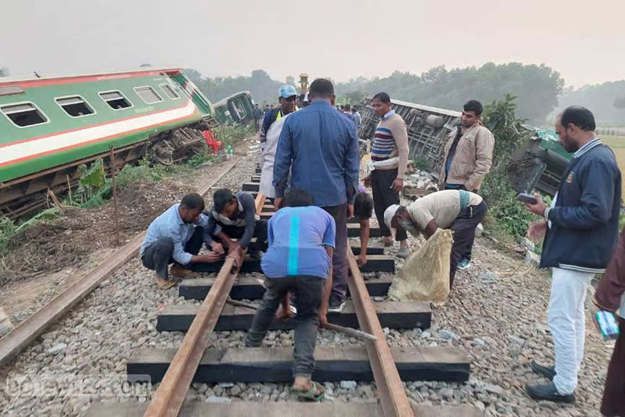 Over 200 railway workers are carrying out repairs on the line. The derailment damaged over 600 feet of railway tracks along the Joydebpur-Mymensingh route, said Anwar.