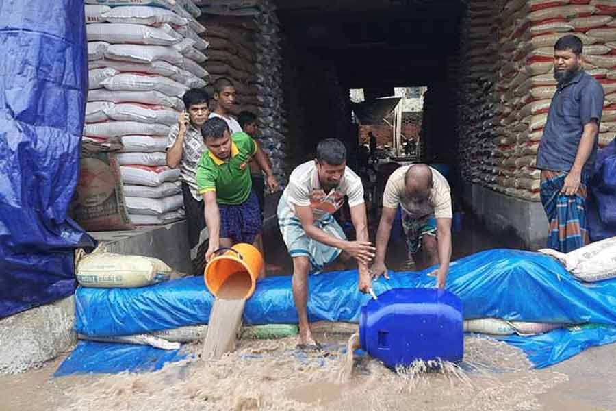 Zillal Hossain, a seller at Barishal Rice Agency, said: "The market needs to be elevated. Over 5,000 sacks have been submerged.”
