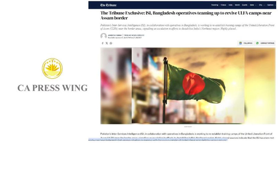 The Press Wing of the Chief Adviser has said that the report published in an Indian newspaper saying that operatives of Pakistan’s ISI are working to reopen a ULFA camp near the Assam border in Bangladesh, is false and baseless.