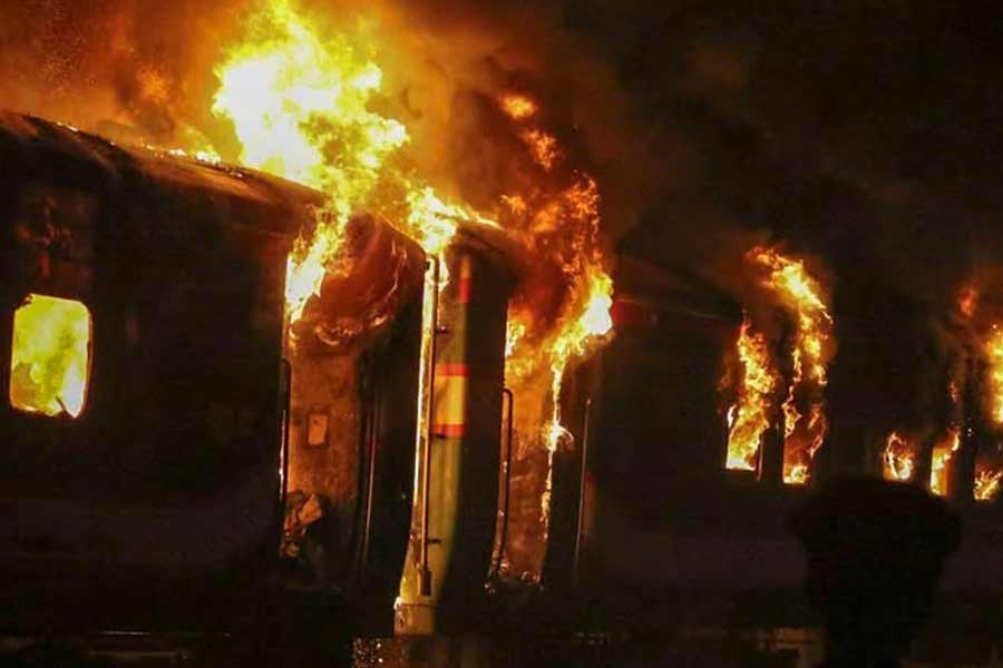 Locals were terrified to see some carriages of the train from Jashore’s Benapole on fire during its entry into the capital through Sayedabad.