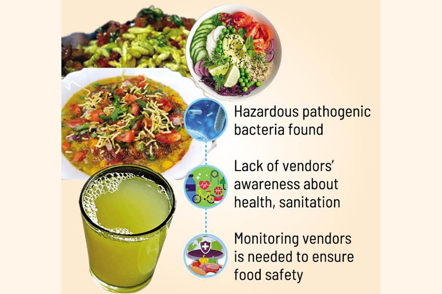 The research focused on street foods like chatpati, chhola-muri (chickpea and puffed rice), sandwiches, sugarcane juice, aloe vera syrup, and ready-to-eat salad in the city restaurants.