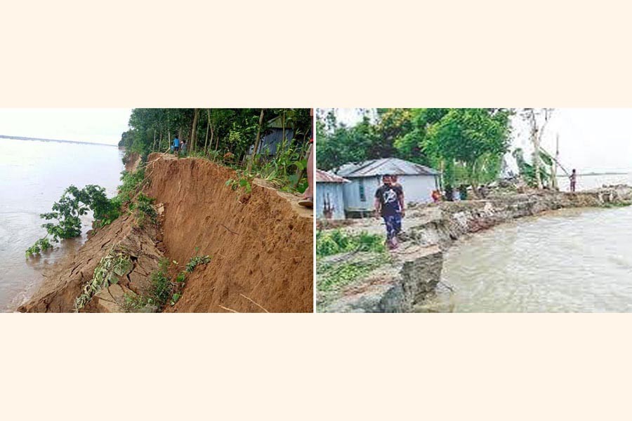 River erosion at Boripara village in Netrakona (left), Fulchhari upazila of Gaibandha district — FE Photos