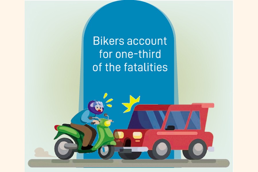 According to the Bangladesh Jatri Kalyan Samity, motorbike accidents accounted for 30.53 per cent of the total accidents, 33.56 per cent of the deaths and 17.71 per cent of the injuries.
