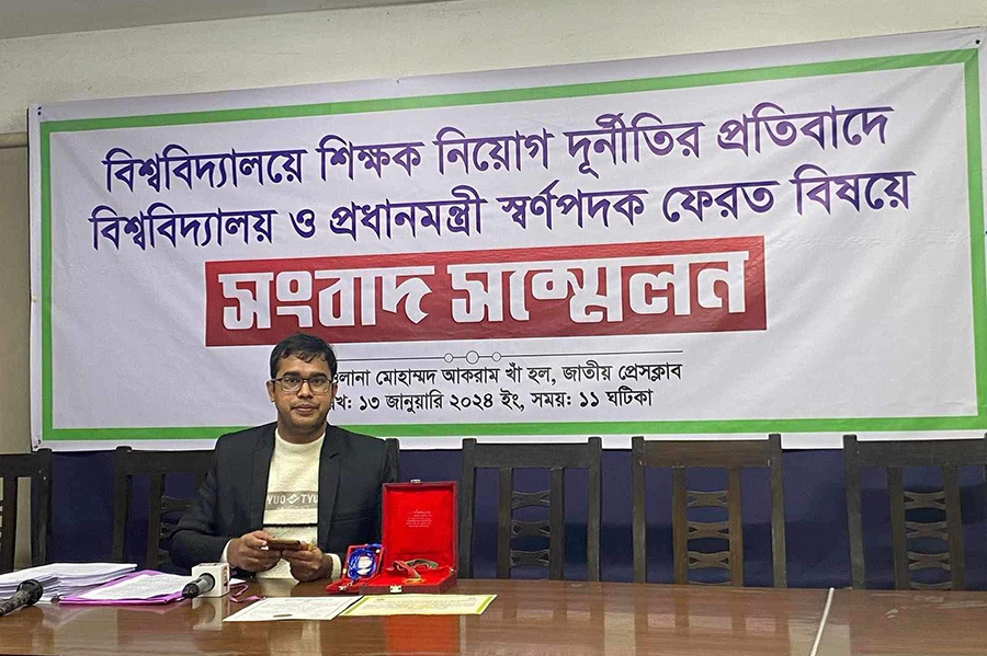 “I am rejecting the Prime Minister's Gold Medal protesting corruption, irregularities and nepotism in the recruitment of teachers in different universities of the country, including Rajshahi University,” he said.