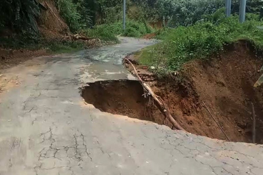 Besides, different portion of the road caved in after heavy downpour, creating panic among local people, reports UNB.