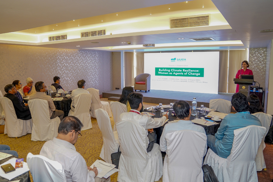 SAJIDA Foundation hosted a research dissemination event titled “Building Climate Resilience: Women as Agents of Change” in Dhaka on Thursday (August 21).