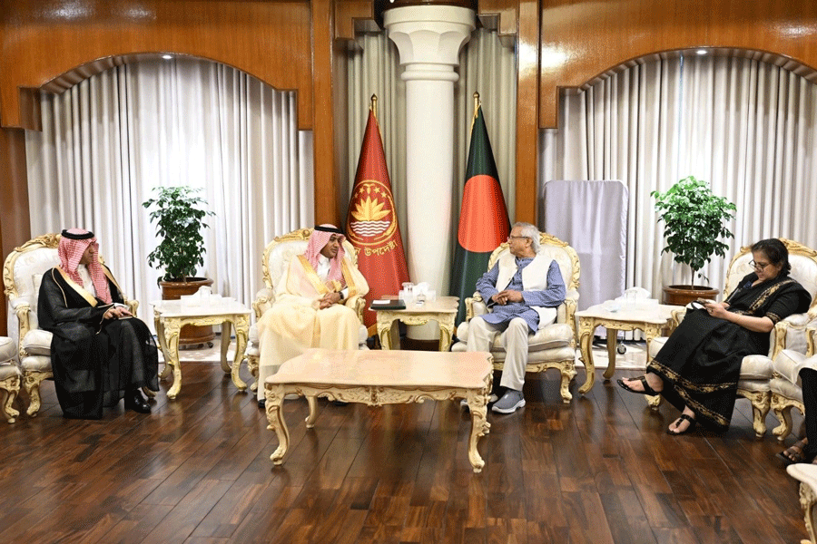 Saudi Ambassador in Dhaka Dr Abdullah Zafer bin Abiyah handed over the invitation of Saudi Crown Prince and Prime Minister Mohammed bin Salman to the Chief Adviser during a meeting at the State Guest House Jamuna on Sunday.