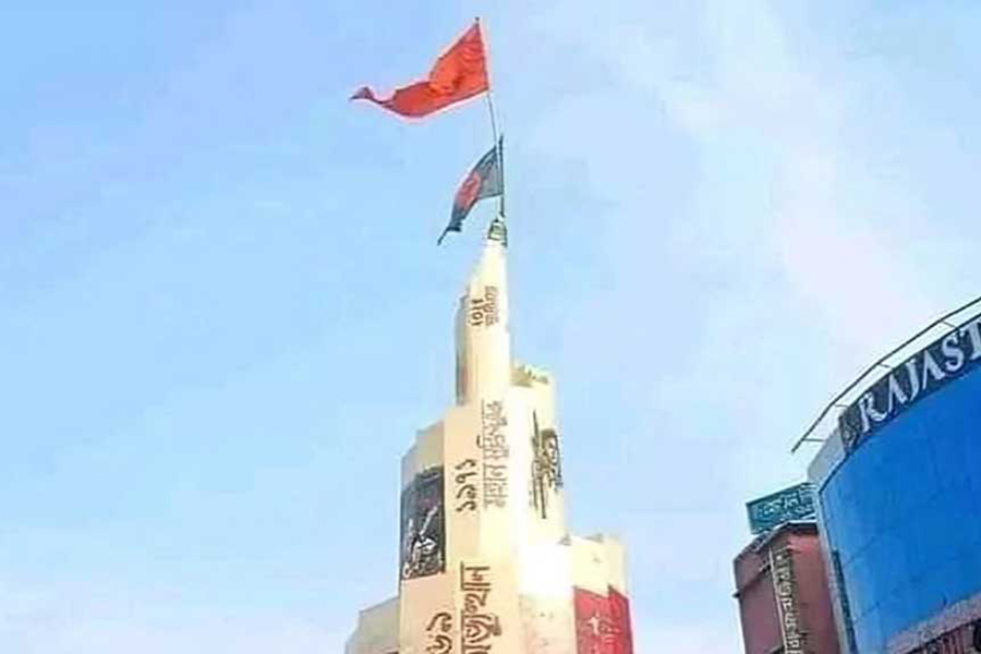 Following the Anti-discrimination Student Movement that toppled the Sheikh Hasina regime, a pole with the national flag was placed at the New Market square. Later, on Oct 25, a saffron-coloured flag was allegedly placed over the national flag during a rally organised by the Bangladesh Sanatani Jagaran Mancha at Laldighi field.