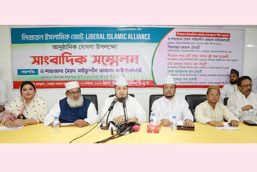 Chairman of the Ashikine Awlia Oikya Parishad Bangladesh and Co-chairman Liberal Islamic Alliance Shah Sufi Syed Alam Noori Al Sureshwari, Chairman of the Bangladesh Janodal (BJD) and Co-chairman Liberal Islamic Alliance Md Mahbubur Rahman Joy Chowdhury, Chairman of the National Awami Party (NAP Vashani) and Co-chairman Liberal Islamic Alliance Md Hasrat Khan Vashani and Chairman of the Krishak Sramic Party (KSP) and Co-chairman and coordinator Liberal Islamic Alliance Farahnaz Haque Chowdhury, among others, were present.