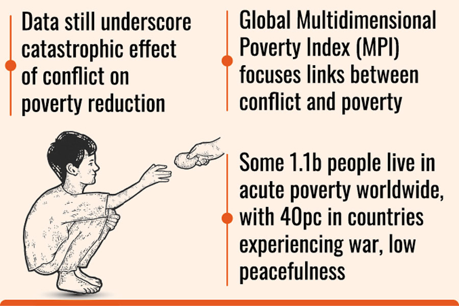 The 2024 edition of the MPI report states that 1.1 billion people live in acute poverty worldwide, with 40 percent living in countries experiencing war, fragility and/or low peacefulness according to at least one of the three widely used datasets of conflict settings.