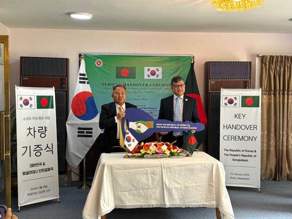 The Republic of Korea has provided seven protocol vehicles to the Ministry of Foreign Affairs of the People’s Republic of Bangladesh to commemorate the 50th anniversary (2023) of establishing diplomatic ties between Bangladesh and South Korea.