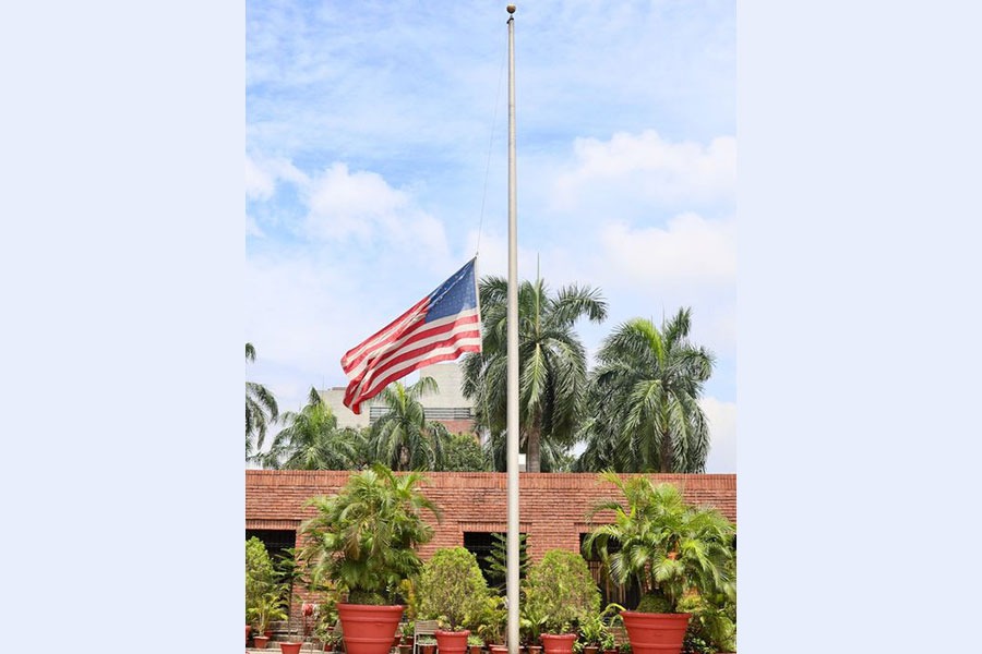 The United States (US) Embassy in Dhaka will fly its flag at half-staff on Saturday in solidarity with Bangladesh’s one-day state mourning over the deaths of Palestinians in Israeli attacks.