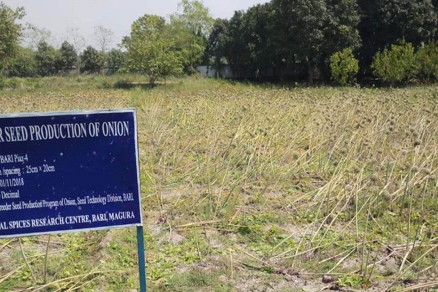 Regional Spice Research Center, Magura, official sources said they are happy over the bumper production of BARI- 4 onion seeds on their office ground for the first time.