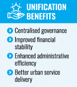 Citing the Municipal Corporation of Delhi as an example, the taskforce argued that a reunification of Dhaka's city corporations would bring about centralised governance, improved financial stability, enhanced administrative efficiency, and better urban service delivery.