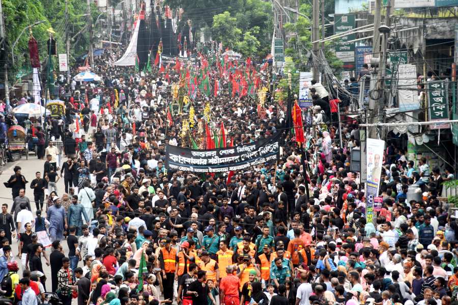 The Tazia procession marking the holy Ashura began from the historic 400-year-old Hosni Dalan Imambara in the capital commemorating the martyrdom of Imam Hussain (RA), the beloved grandson of the Prophet Hazrat Muhammad (PBUH), in the Battle of Karbala.
