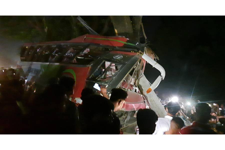 Three people died and at least 25 others were injured as a passenger crashed into an electric pole and a tree in Chandina upazila of Cumilla on Dhaka-Chattogram highway on Tuesday evening.