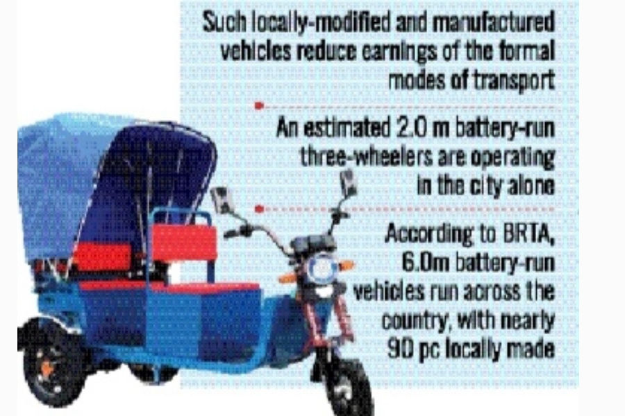 According to Bangladesh Road Transport Authority (BRTA), around six million battery-run vehicles operate across the country, with nearly 90 per cent of them locally manufactured.