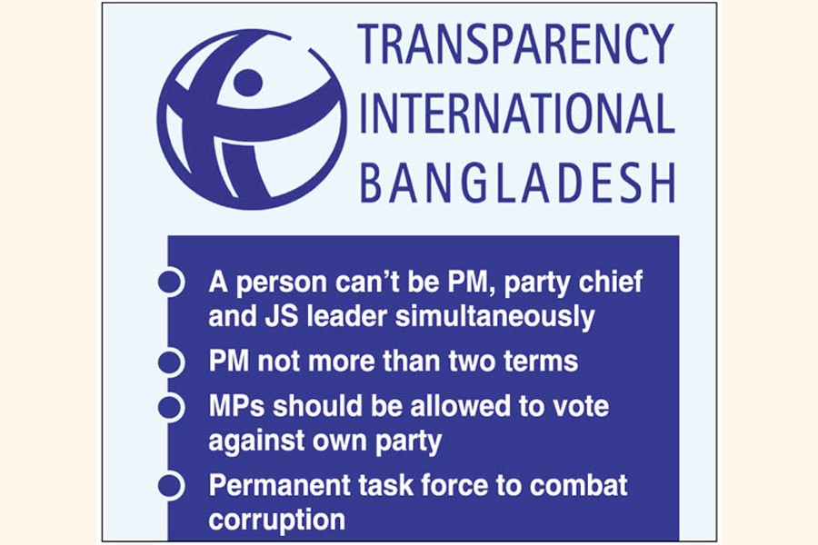 Transparency International Bangladesh (TIB) has proposed that the interim government implement legislation to prevent party leaders from being appointed as the head of government in the country's democratic system.