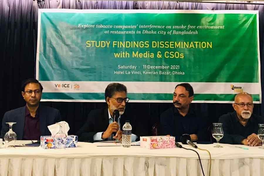 The study titled ‘Explore tobacco companies’ interference on the smoke-free environment at restaurants in Dhaka city of Bangladesh’ is conducted by Voices for Interactive Choice and Empowerment (VOICE) a research and advocacy organisation with the support of Campaign for Tobacco-Free Kids (CTFK) in August-September 2021.