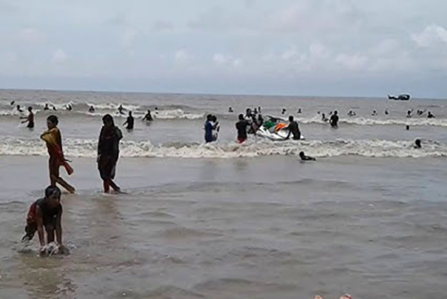 The incident occurred on the west side of Zero Point on the beach around 10:30 am while Rajesh, along with four others, including his brother and sister-in-law, was taking a bath.
