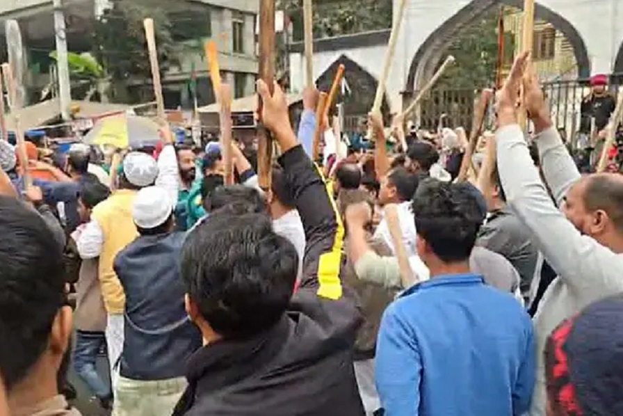 Inspector Abdul Hannan said traders were holding a peaceful human chain against a person named Abdul Rahman, as they had done previously. Police were present nearby when several individuals suddenly tried to snatch their banners, leading to scuffles and subsequent chases. He said the situation is now under control.