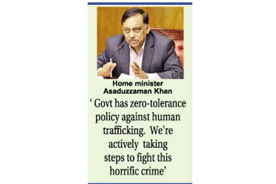 Home minister Asaduzzaman Khan says, "Trafficking in persons is a serious human rights violation and the government has a zero-tolerance policy on this. We're actively taking steps to fight this horrific crime. The fight against trafficking requires multi-stakeholder engagement."