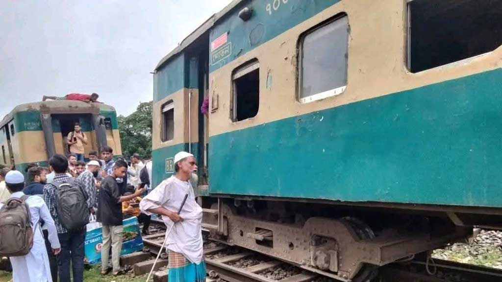 The incident occurred at 8:17am on Saturday when the Dhaka-bound Jamuna Express came off the tracks in front of the APBn office, according to Kamalapur Railway Police Station chief Joynal Abedin.