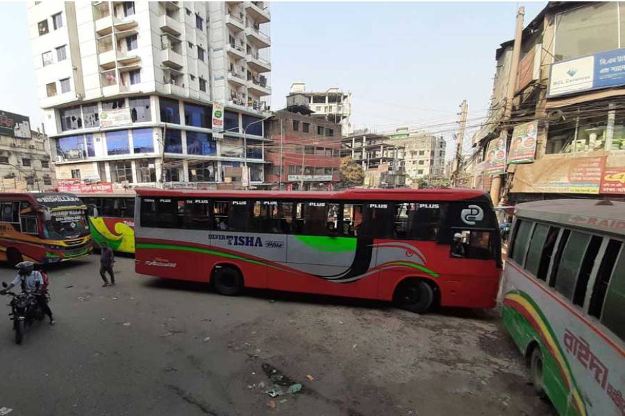 A group of bus workers also held a protest in the Sayedabad area of Dhaka last Monday, pressing for various demands, including the withdrawal of the decision to only allow passenger pick-ups at counters.