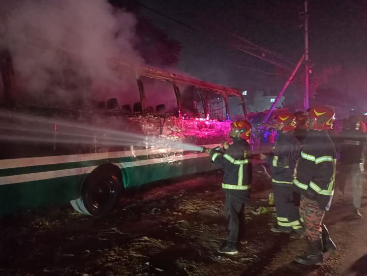 Miscreants set fire to two buses of Manarat International University in Dhaka’s Mirpur on Tuesday.