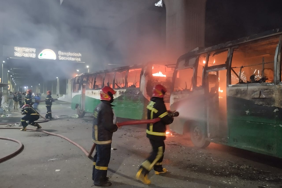 Amid the ongoing turmoil over the quota reform movement across the country, miscreants set two passenger buses on fire in front of the Jatiya Press Club on Tuesday night.