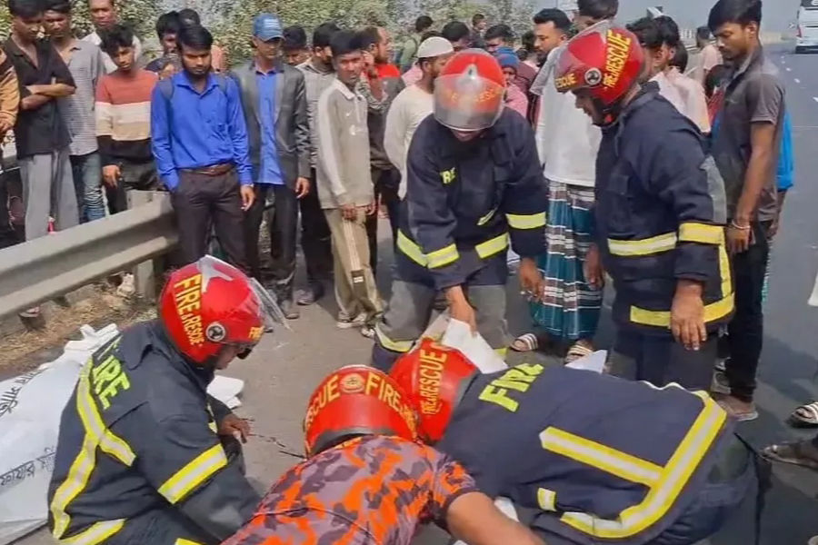 The accident occurred around 11:19 am when the Dhaka-bound motorcycle carrying the duo lost control and slammed into the railing of the road divider, leaving them dead on the spot, said Muhammad Shafiqul Islam, Deputy Assistant Director of Munshiganj Fire Service and Civil Defence.