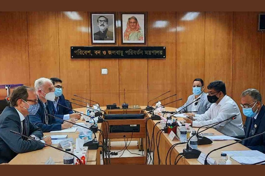 Secretary of the Ministry of Environment, Forest and Climate Change Md. Mostafa Kamal, Additional Secretary (Administration) Iqbal Abdullah Harun, Additional Secretary (Development) Ahmed Shamim Al Razi, Additional Secretary (Climate Change) Md. Mizanul Hoque Chowdhury, Joint Secretary (Climate Change) Sanjay Kumar Bhowmick and John Warburton, Head of Climate and Environment Program at the British High Commission were present in the meeting among others.