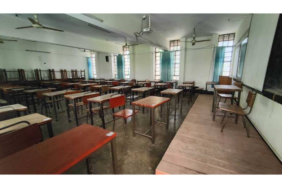 Classrooms were empty, and students were largely absent, with many choosing to remain inside their residential halls.
