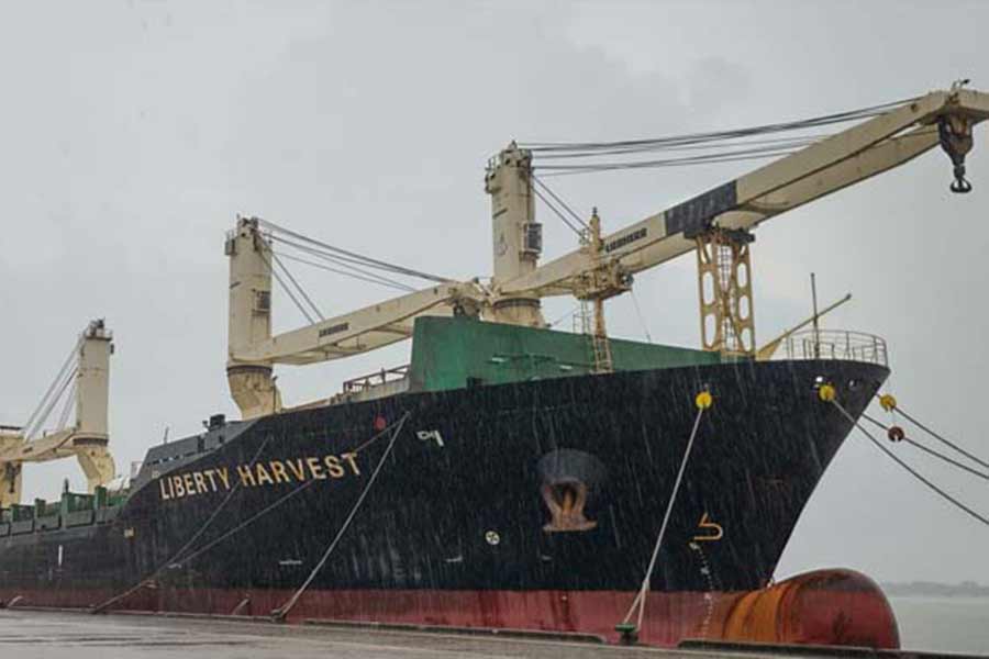 The ship, ‘MV Liberty Harvest’ carrying goods weighing 1137.449 MT docked at the port’s jetty no 7 on Sunday afternoon, said Biplab Khan, manager of HSR Ocean Traders- the ship's local shipping agent.