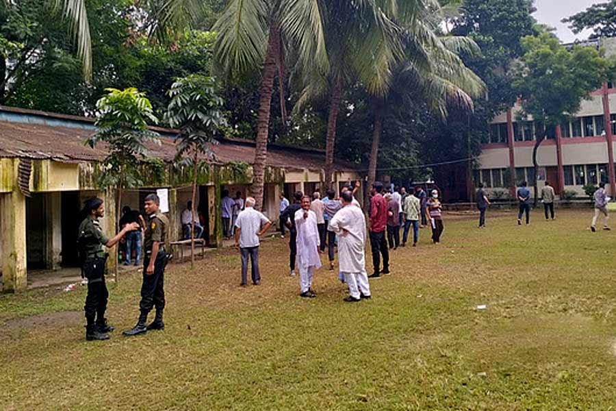 Voting began at 8 am at the Dhaka Cantonment Shishumangal centre. At least 2,409 male voters are listed to cast their ballots at four booths in the centre, said Presiding Officer Md Abdul Mukit.