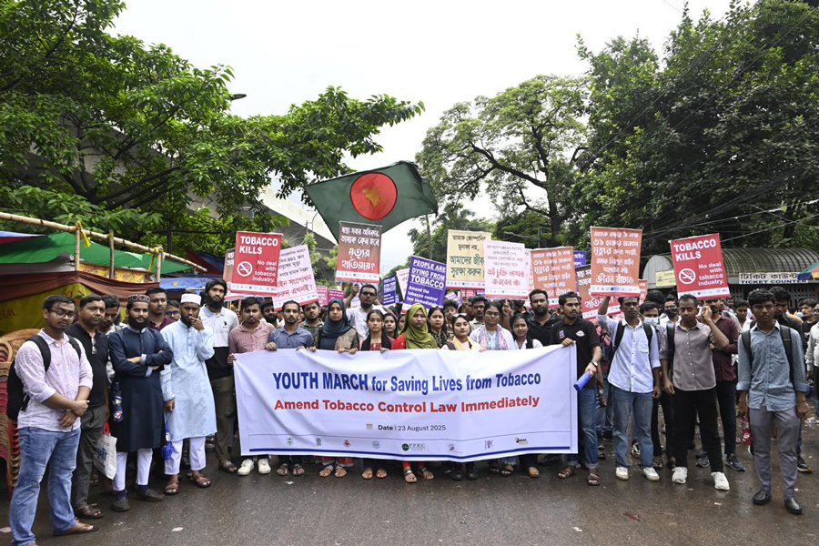 An anti-tobacco youth march in Dhaka on Saturday called on the government to ensure the swift passage of a pending draft amendment to the Tobacco Control Act.