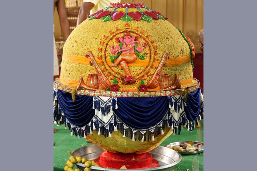 To make the occassion of Ganesh Chaturthi yet more special, a Tapeswaram-based sweet firm prepared a special laddu, weighing 580 kilograms.