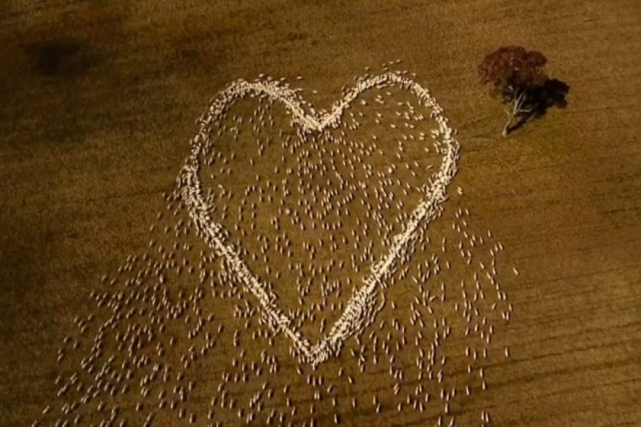 A sheep farmer stuck in lockdown in New South Wales who was unable to attend his aunt’s funeral has honoured her memory with the ultimate tribute: a love heart made from sheep, reports The Guardian.