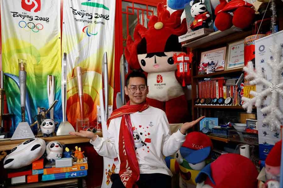 More than 5,000 items, from giant cuddly mascots and Olympic torch replicas to commemorative stamps and coins, fill his small house in one of the historic Xicheng district's narrow alleys.