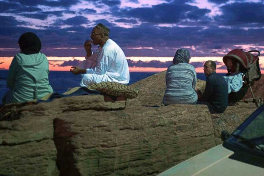 Stocked with food and drinks, families and friends swarm to the beach to enjoy the Atlantic breeze and, when the fasting is declared over, share in the iftar meal, reports AP.