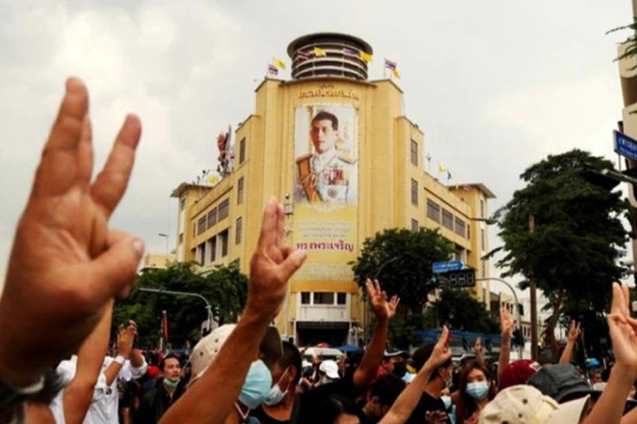 The salute was widely seen again in Thailand - which shares a border with Myanmar and where many migrants from Myanmar work - last year, during months of protests calling for the removal of the government led by the 2014 coup leader and reforms to the monarchy.