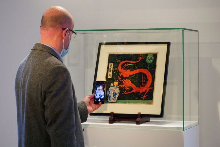 The painting is the work of Belgian illustrator Georges Remi, better known by his nom de plume Herge, who was the author of the Tintin comic books. He died in 1983, reports Reuters.