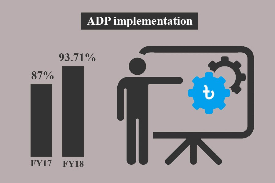 "The ADP implementation reached the country's ever highest rate of 93.71 per cent in the past fiscal year," he said, reports UNB.