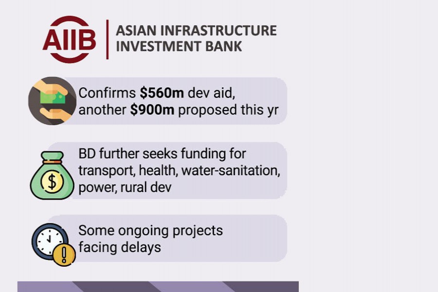 AIIB has recently emerged as one of the key development partners of Bangladesh as it has so far confirmed a total of US$560 million worth of assistance during January-August period of this calendar year 2021 for the country's different development projects.