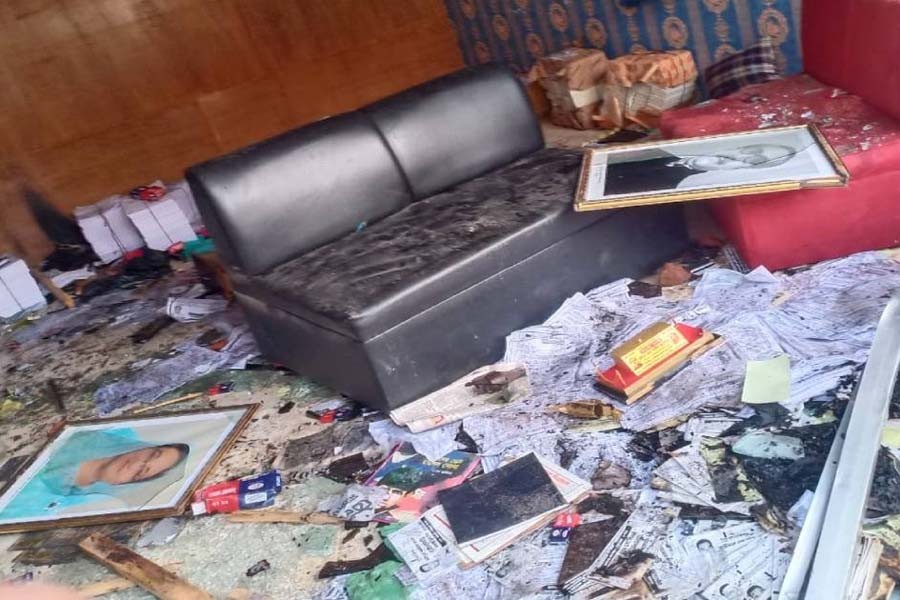 The office of ward number 56 independent councillor aspirant was vandalised and torched, allegedly by Awami League-backed candidate in Borogram area in Kamrangirchar on Friday afternoon.