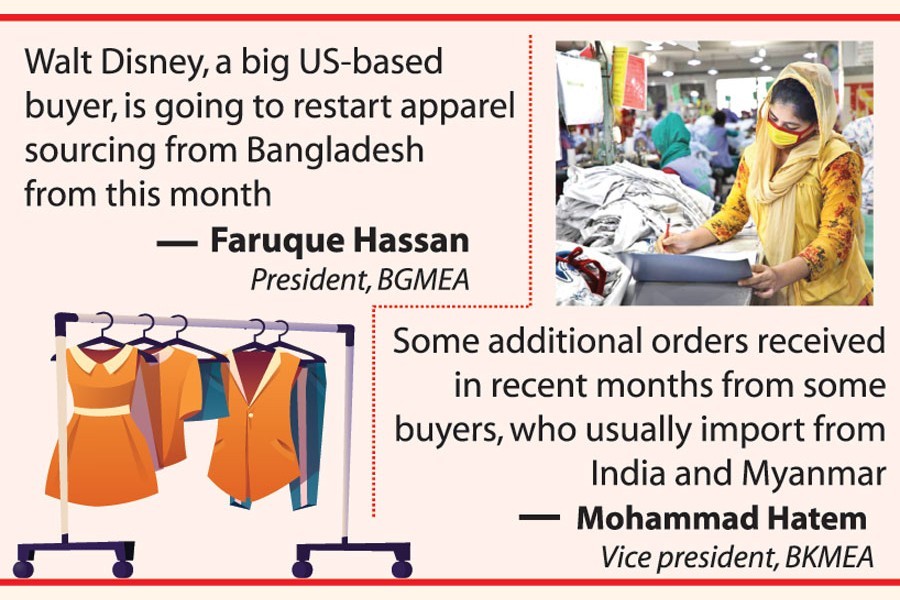 Mr Faruque said Walt Disney, a big US-based buyer, was going to restart its apparel sourcing from Bangladesh from this month after a long break due to the Tazreen Fashion fire and Rana Plaza collapse incidents.