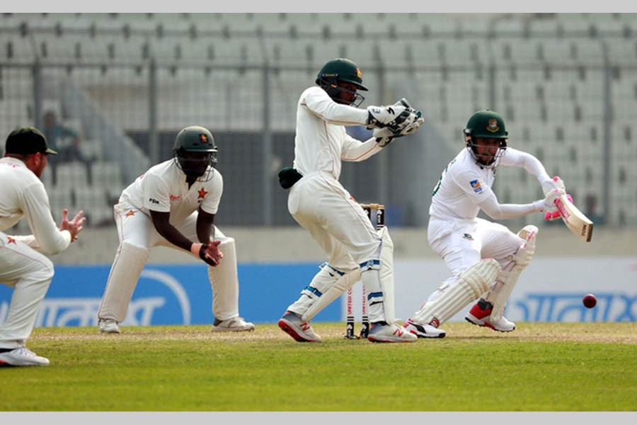He stitched together a 200-run stand for the fourth wicket with captain Mominul Haque, who hit his ninth Test hundred, to put the Tigers in a commanding position in the one-off Test on Monday.