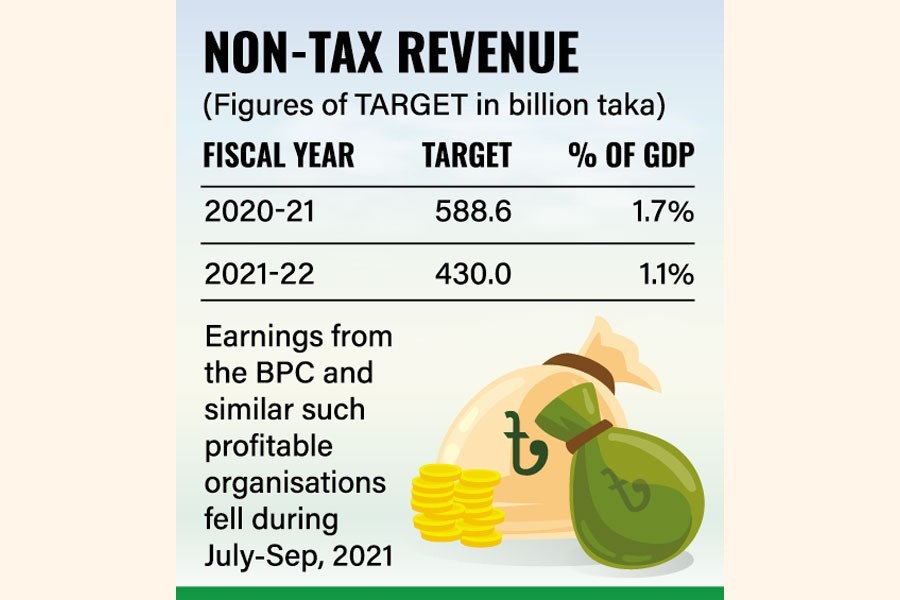 People familiar with the developments at the finance division told the FE Thursday that the earnings from the Bangladesh Petroleum Corporation and similar such profitable organisations fell during the period.
